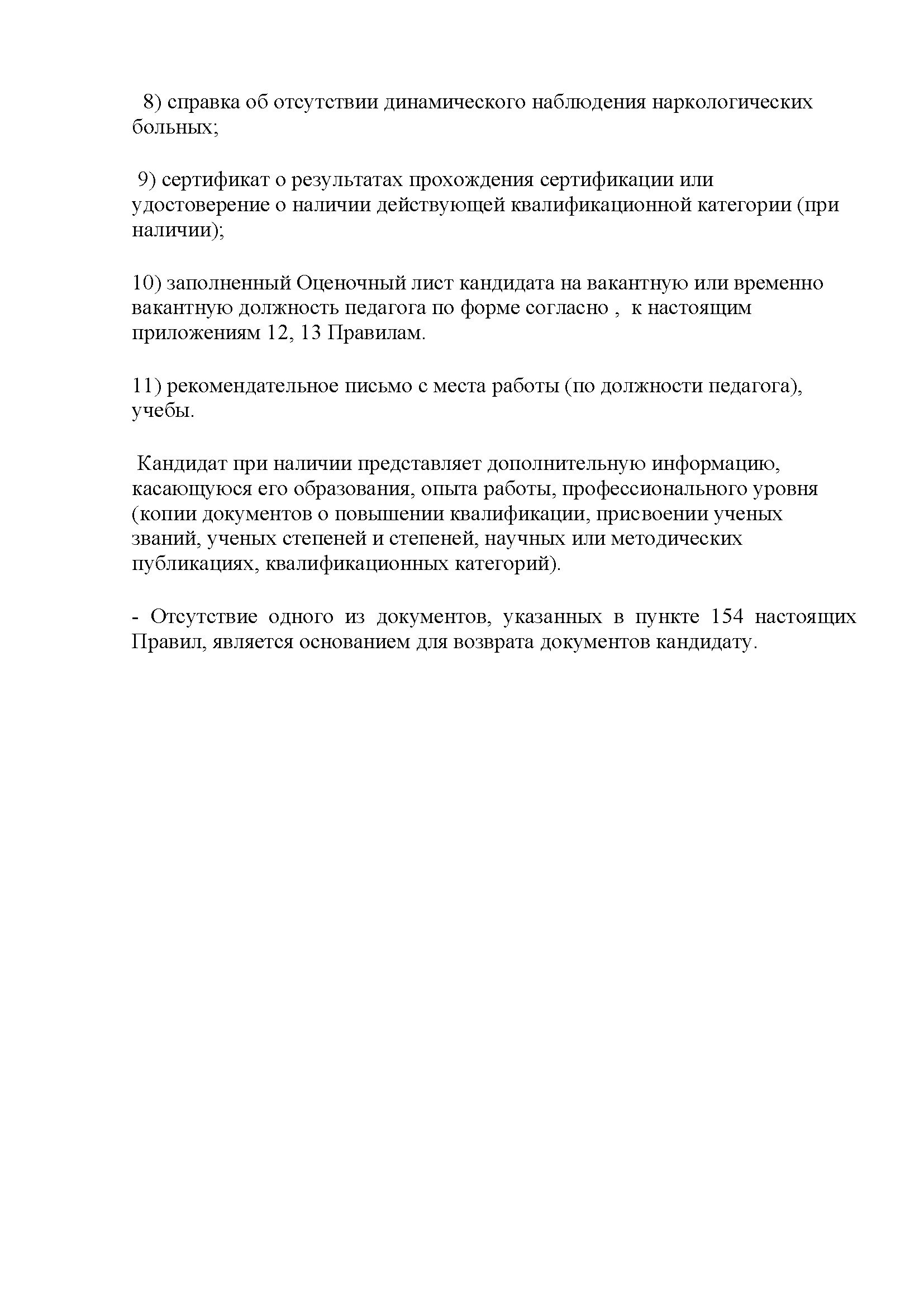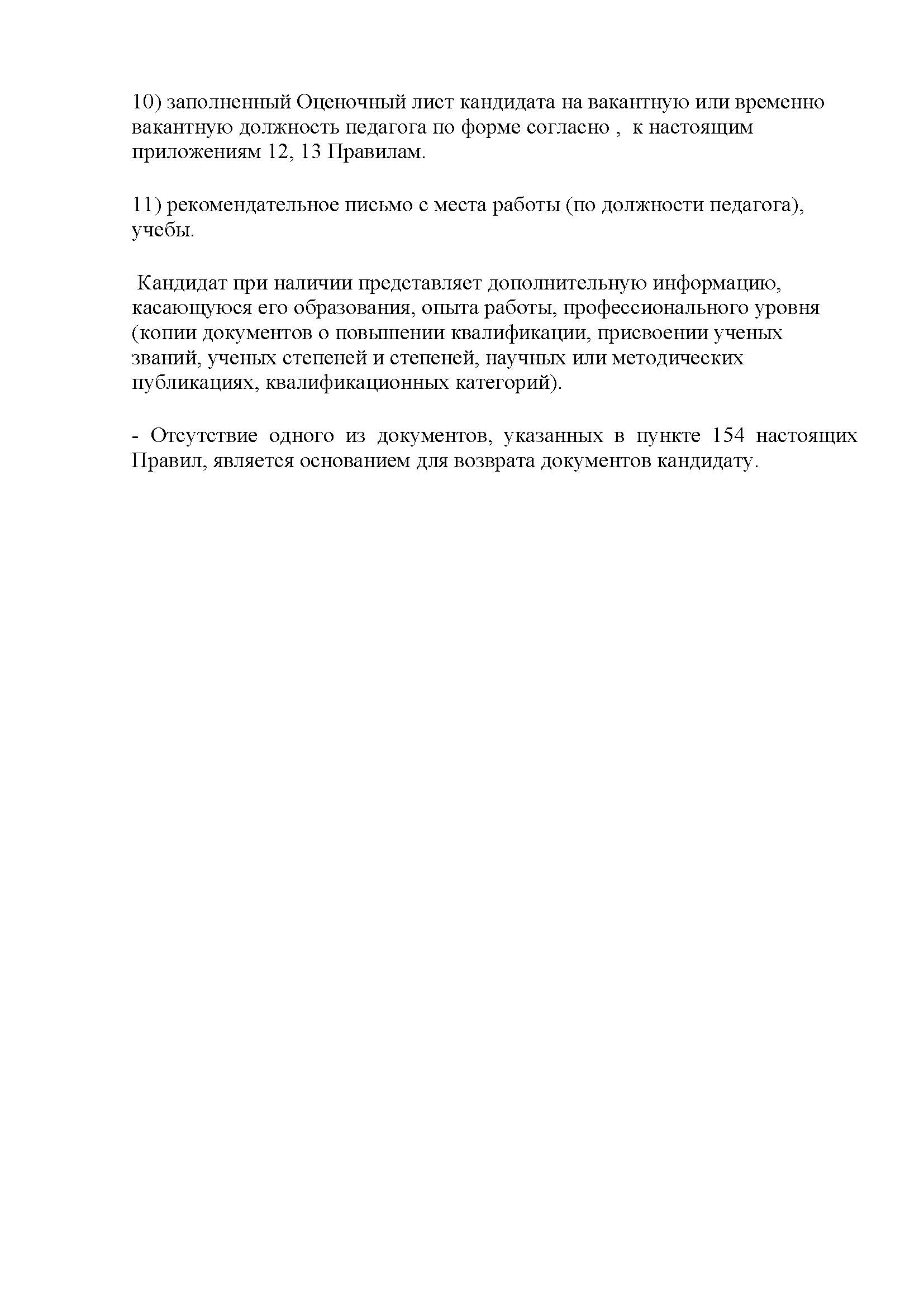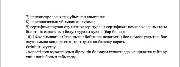 - көрсетілген құжаттардың біреуінің болмауы құжаттарды кандидатқа қайтару үшін негіз болып табылады.
