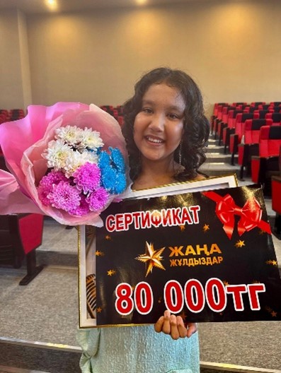 Бас жүлде - Утешева Айсана (скрипка) педагог: Токталиев А. Ш. сүйемелдеуші: Урусова Е. В.
