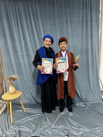 І орын -Омар Шұғыла, ІІ орын – Айқожа Мұхамаддин, ІІІ орын – Баймакулова Алина, Талғат Амина, Нұралы Елжан, Омар Айша жетекшісі Ә.М.Сыздықбай.