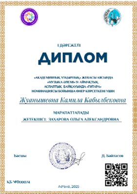 І орын - Жуанышева Камила (гитара) педагог: Захарова О.А.