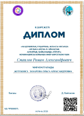 ІІ орын - Смаилов Роман (гитара) педагог: Захарова О. А.