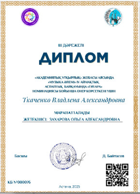 ІІІ орын – Жұмабай Зере, Ткаченко Владлена жетекшісі О.А.Захарова
