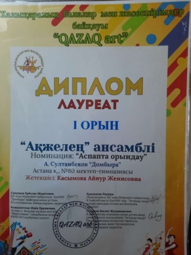 ІІ орын - №80мф «Ақжелең» домбырашылар ансамблі жетекшісі. А.Ж.Касымова.