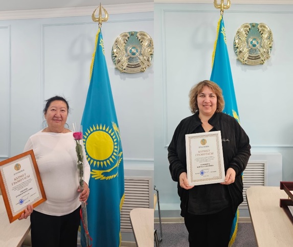 ҚР Оқу-ағарту министрлігінің РҚББОӘО Алғыс хат – Гумарова Сауле Серикхановна, Таженова Гулназ Нұртазақызы;