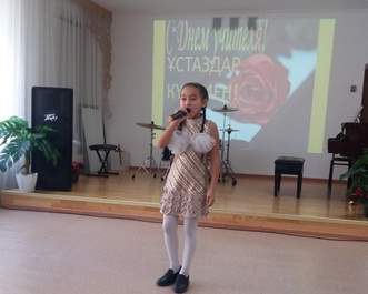 Концертке мектебіміздің «Наркескен», «Серпер» домбырашылар ансамблі, саксофоншылар, «Көркемай» би ансамблі, «Кербез қыздар» жетігеншілер ансамблі , Тлеубекқызы Қарақат «Мұғалім» өлеңін мәнерлеп оқып қошеметке иеленді.