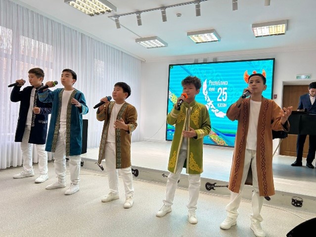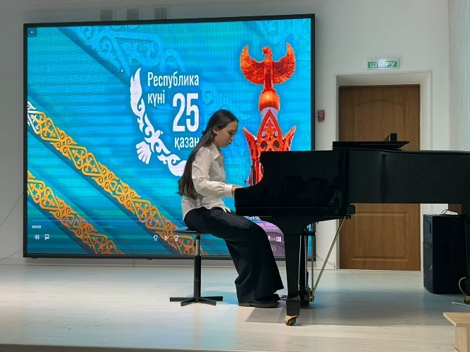 2025 жылдың 23 қазан күні мектебімізде 25-қазан Республика күніне орай дәстүрлі «Отаным- Қазақстан» атты мерекелік концерт өтті.  Бұл концерт мақсаты – еліміздің  тәуелсіздігі мен бірлігін дәріптеу, жас ұрпақтың бойында отансүйгіштік сезімді арттыру, ұлттық рух пен мәдени құндылықтарды насихаттау болды.