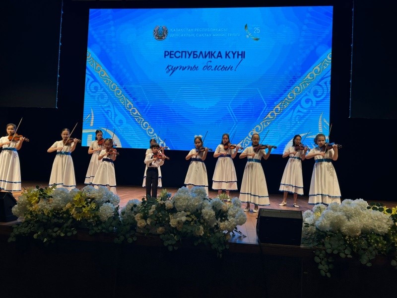 Сонымен қатар 24 қазан күні Назарбаев университет ғимаратында Республика күніне медицина қызметкерлерін мараптатау кешіне мектебіміздің «Dolce» скрпикашылар ансамблі өз өнерлерін көрсетіп қошеметке иеленді жетекшісі Сеитова зауре Дюсекеевна.