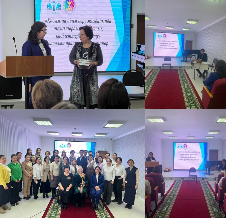 20 қараша 2024 ж, Астана қаласы № 1 балалар музыка мектебінде әдістемелік орталықпен бірлесіп «Қосымша білім беру жағдайында оқушылардың музыкалық қабілеттерін дамыту»  қалалық практикалық семинар өтті. Семинардың мақсаты: Бағытталған тиімді әдіс-тәсілдермен таныстыру, тәжірибе алмасу және шығармашылық әлеуетін арттыру. Семинарға 40 педагогтер қатысты №1,2 өнер мектептер, №1,2,3 музыка мектептердің педагогтері , семинардың модераторы: Тапенов Д.Т, философия докторы (PhD), ҚазҰӨУ «Домбыра кафедрасының аға оқытушысы»   және ҚазҰӨУ Уразбаева Р.Д  ҚР еңбек сіңірген қайраткері, «Ұмай» ұлттық премияның лауреаты, ҚазҰӨУ профессоры, «Аққулар сазы» оқу-әдістемелік құралдың авторы. «Аққулар сазы» қобыз күй терапиясың авторы.  Байбек А.Қ. Өнертану кандидаты, музыкатану және композиция кафедрасының профессоры өз бағдарламаларымен таңыстырды. Семинар үш бағытта өткізілді -  хор, домбыра және музыка-теориялық пәндер бойынша. Қатысушылар семинардан алған әсерлері мен ұсыныстарын ортаға салды. Қосымша білім беру шеңберінде музыкалық қабілеттерді дамыту жолдары талқыланды. Қатысушылар музыкалық қабілеттерді дамытуға арналған заманауи әдіс-тәсілдер туралы кеңейтілген білім алды. Педагогтер арасында тәжірибе алмасу жүзеге асты, тәжірибелік бөлімінде алынған әдістерді күнделікті сабақтарда қолдану жоспарланды. Семинар оқушылардың музыкалық қабілеттерін дамытудың маңыздылығын көрсетіп, қосымша білім беру жағдайындағы тәжірибелік жұмыстардың тиімділігін арттыруға ықпал етті. Қатысушылар бірлесе жұмыс істеп, жаңа идеялар мен әдістерді меңгерді.
